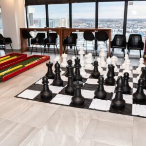 Mega Chess is played on a colossal chessboard with oversized chess pieces, each piece standing several feet tall. The rules and gameplay of chess remain unchanged, with players maneuvering their colossal knights, queens, and rooks strategically to outwit their opponents. The objective is the same: checkmate your opponent’s king while protecting your own. The oversized pieces create a dynamic and visually impressive battlefield where strategy reigns supreme.